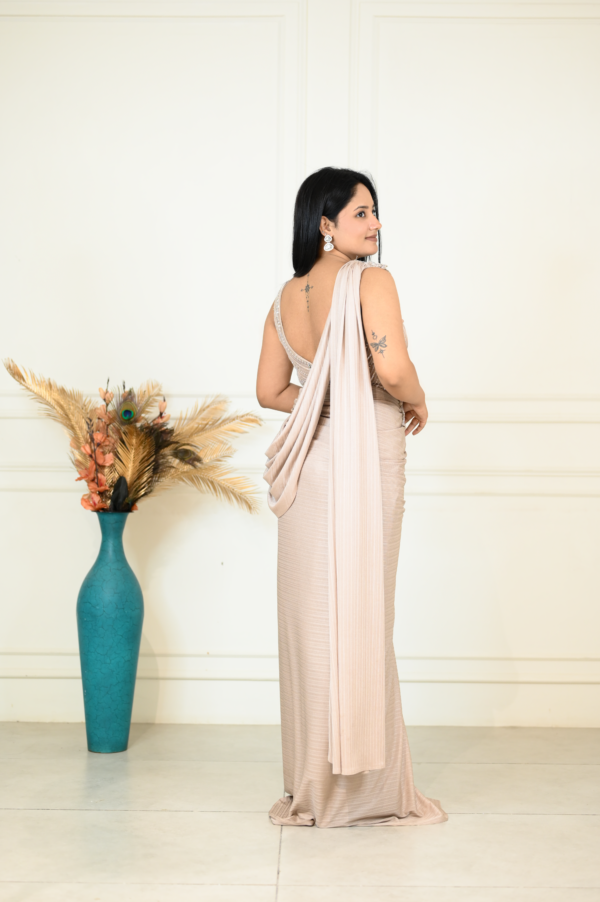 | Description | Embrace effortless elegance with this beautifully crafted drape saree, designed to flatter with a modern touch. Made from a soft, imported venus lycra, it features delicate embellishments that add subtle sparkle and refined detail. The pre-draped silhouette offers ease of wear while maintaining a graceful fall. Perfect for weddings, festive gatherings, and evening celebrations, this saree blends contemporary styling with timeless charm, ensuring comfort, sophistication, and a polished look for any special occasion. |