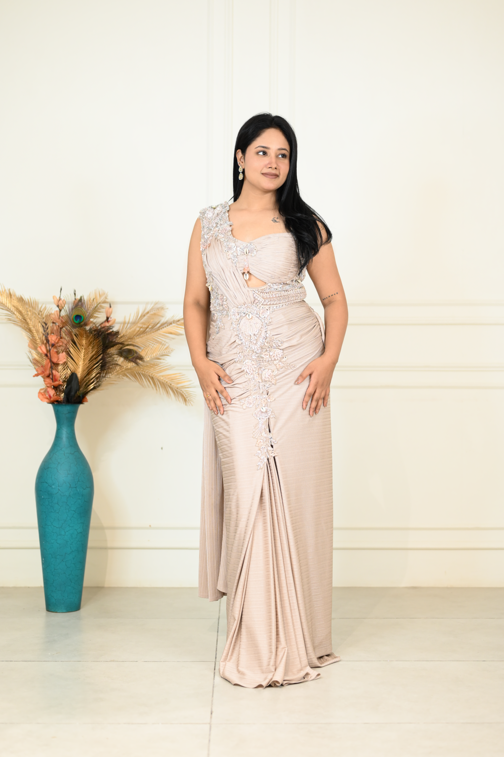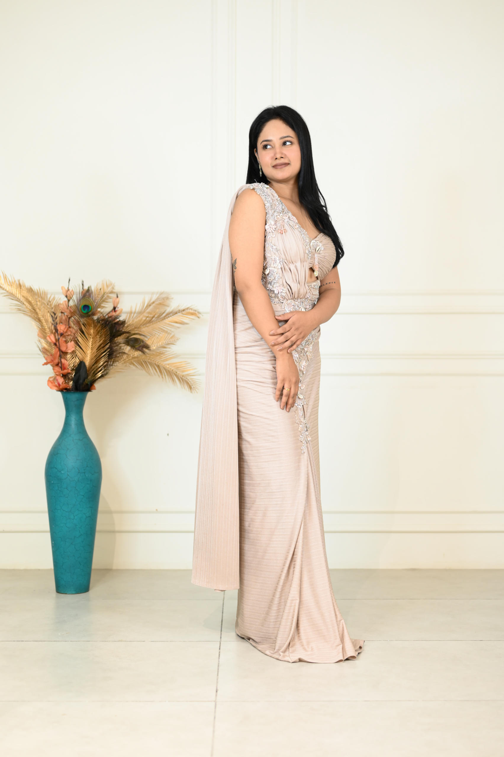 | Description | Embrace effortless elegance with this beautifully crafted drape saree, designed to flatter with a modern touch. Made from a soft, imported venus lycra, it features delicate embellishments that add subtle sparkle and refined detail. The pre-draped silhouette offers ease of wear while maintaining a graceful fall. Perfect for weddings, festive gatherings, and evening celebrations, this saree blends contemporary styling with timeless charm, ensuring comfort, sophistication, and a polished look for any special occasion. |