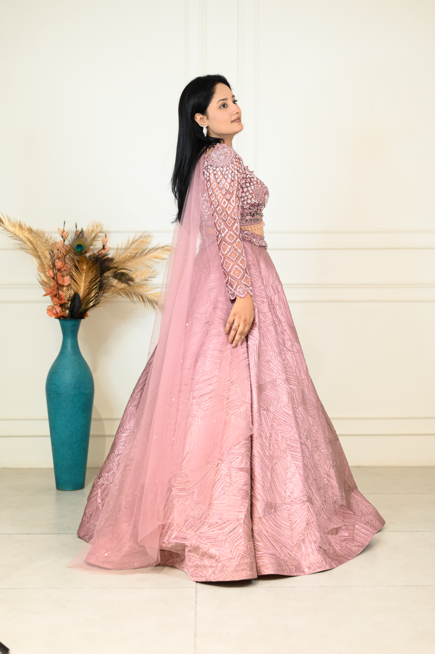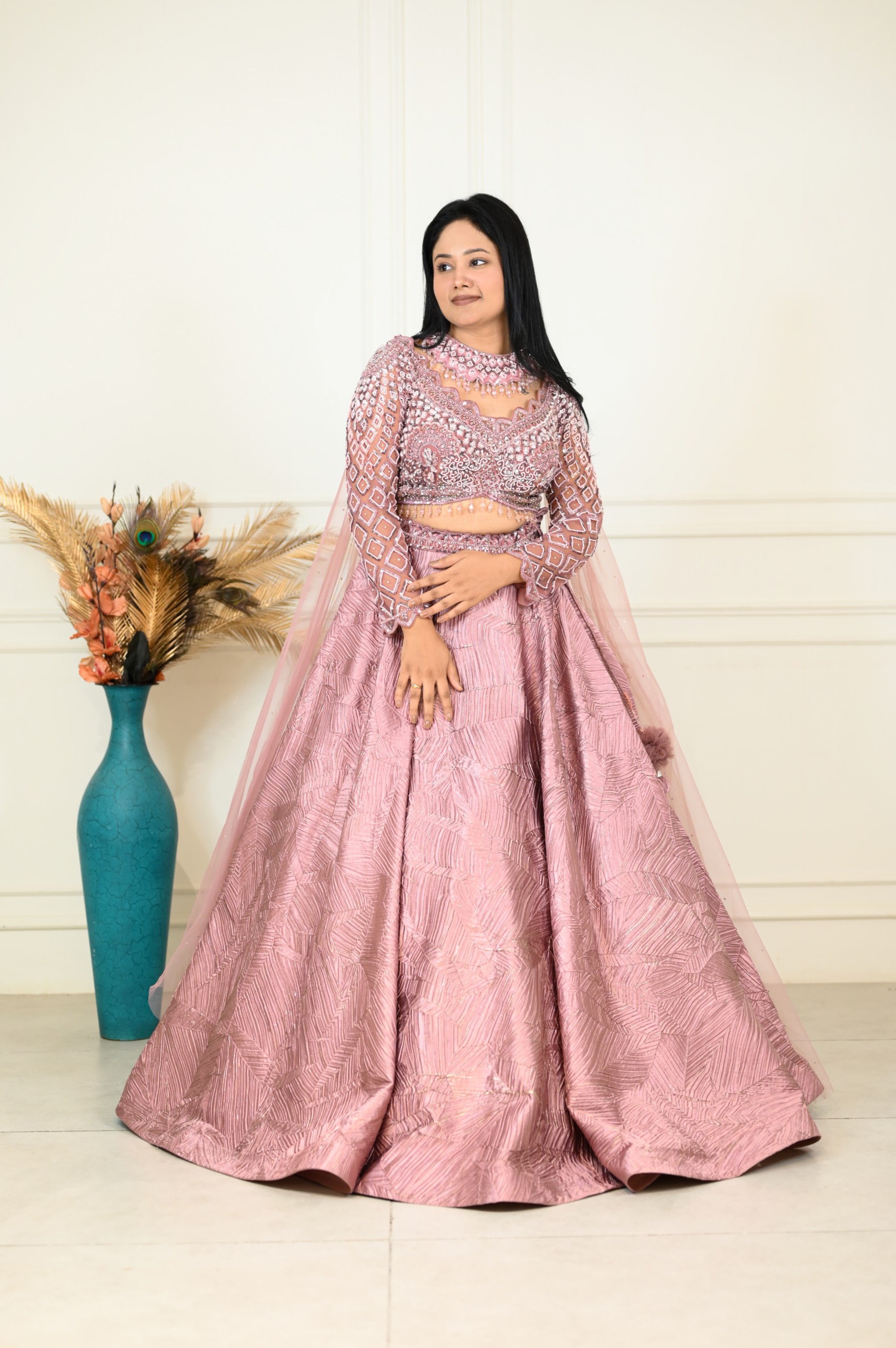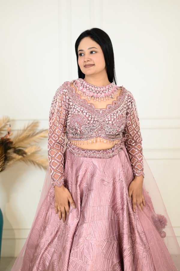 Pink Textured Lehenga