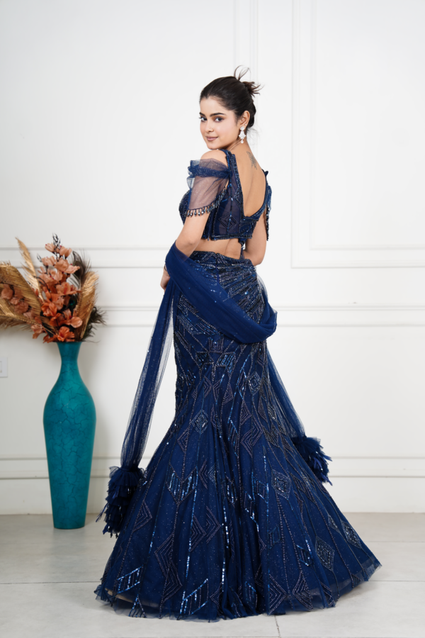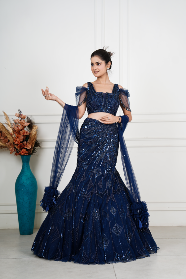 Navy Fishcut Reception Lehenga
